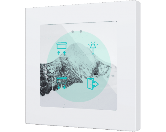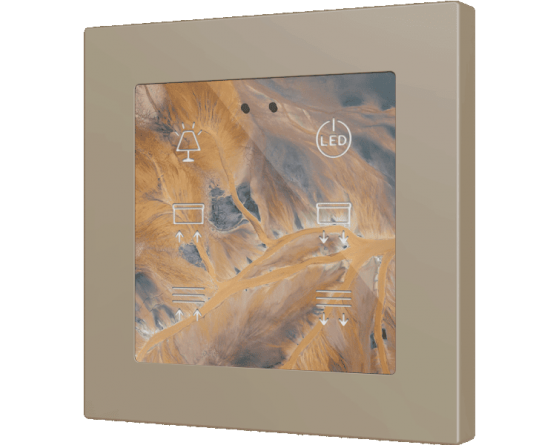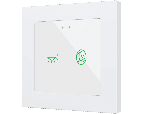 Interrupteurs capacitifs rétro-éclairés en RGB de la famille Flat 55 (pour cadres de 55 x 55 mm) avec design plat, totalement personnalisables. Encastrés dans la famille de cadres et mécanismes Zennio ZS55. N’importe qui peut créer des compositions uniques incluant des images, des icônes et des textes. Cette personnalisation est basée sur une impression professionnelle sur du verre trempé de grande résistance. Il existe des modèles avec 1, 2, 4 et 6 boutons avec des fonctions configurables et des icônes rétro-éclairées, qui s’atténuent lorsque l’utilisateur n’est plus détecté par le capteur de proximité. Le Flat RGB dispose d’une sonde interne de température et d’un thermostat, avec 2 entrées analogiques-numériques qui peuvent être configurées comme entrée binaire pour capteur ou bouton poussoir libre de potentiel, comme sonde de température ou détecteur de mouvement. Installation en boîtier encastrable standard avec cadre 55 x 55 de 1/2/3/4 modules (blanc, anthracite, argent ou champagne). Il est compatible avec KNX Secure.